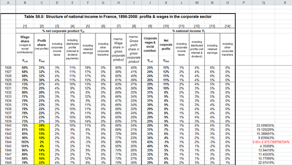 One huge problem with Piketty's spreadsheet work is in the way he adds adjustments. The unrounded values for the values in the yellow column below have been transplanted to the right. Note the inclusion of hardcoded adjustments.