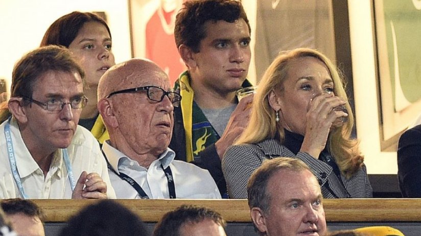 Murdoch flanked by his two sons Lachlan (l) and James (r) (Source: Getty)