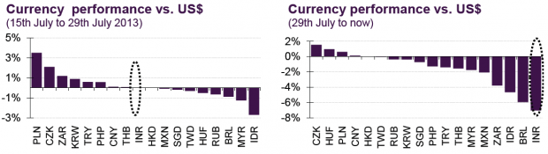 As emerging markets including India tank with the rupee hitting record lows against the pound and the dollar, Shweta Singh of Lombard Street Research suggests that expectations of quantitative easing withdrawal are now "baked in".