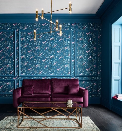Graham & Brown, the heritage British wallpaper company in Lancashire, has chosen a rich and textural moody blue as its paint colour of the year (grahambrown.com). Called Tiru, it is the background colour to its wallpaper of the year, Tori, both an inky teal. Tori wallpaper is a glamorous expression of chinoiserie, featuring exotic birds among delicate leaves and flowers, that cleverly achieves as close to a handpainted look and feel as it’s possible to get.