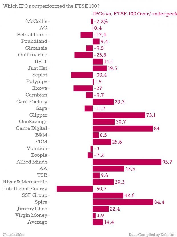New research by accounting firm Deloitte shows that the 30 IPOs which completed in 2014 generated an average return of 12.4 per cent, outperforming the FTSE 100 by 14.4 percent over the year.
