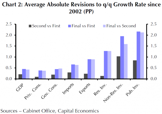 Capital Economics' Japan economist, Marcel Thieliant, notes that "revisions between the first and second estimate have historically not brought the data closer to final outcomes."