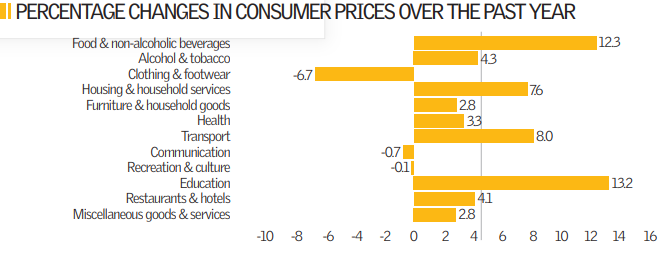 The 4.4 per cent annual inflation rate is more than double the Bank of England’s two per cent target. Normally such a sharp increase would lead to an automatic rise in official rates, but with the economy teetering on the brink of recession its hands are tied.