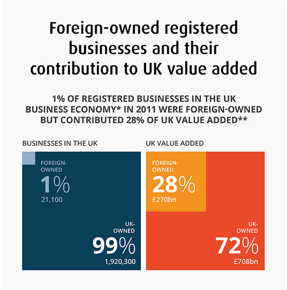 Just one per cent of UK businesses are foreign-owned but account for a quarter of output
