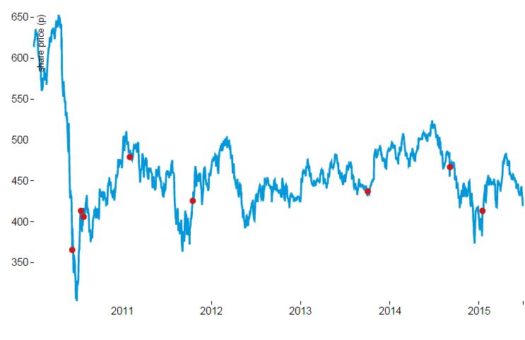 One chart showing how BP's share price never recovered from the Deepwater Horizon disaster