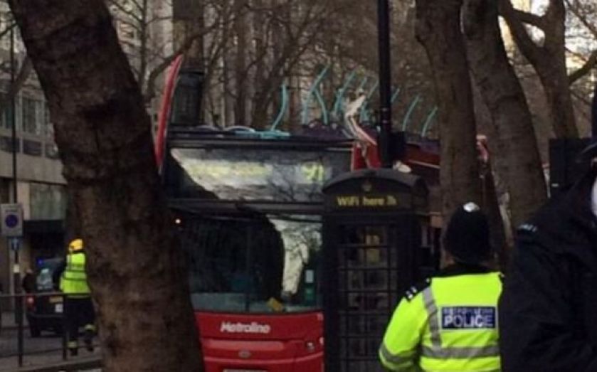 Roof of London bus ripped off in Holborn, eyewitnesses say it hit a tree