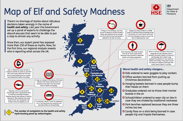 The HSE analysed the national spread of reports made to the Myth Busters Challenge Panel, which was created in order to crack down on health and safety excuses. More people reported being told "sorry, can't do that because of health and safety" in London than anywhere else.