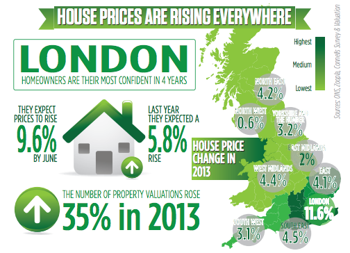 The price of London property rose by 11.6 per cent in the 12 months to November 2013, while prices outside London and the south east increased by a much more moderate 3.1 per cent. The total rise for the UK was 5.4 per cent.