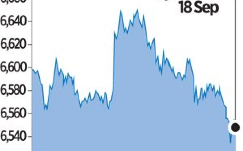 The blue-chip FTSE 100 closed down 0.2 per cent, or 11.35 points, at 6,558.82 points – towards the lower end of the day’s range but within the roughly 100 point open/close range the index has traded since 10 September.
