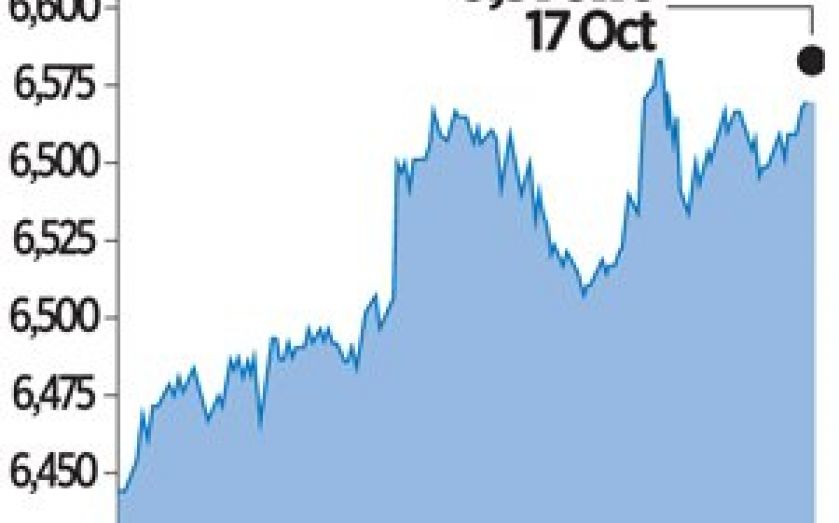 The blue-chip FTSE 100 index closed up by 0.1 per cent, or 4.57 points, at 6,576.16 points to mark its sixth straight session of gains.