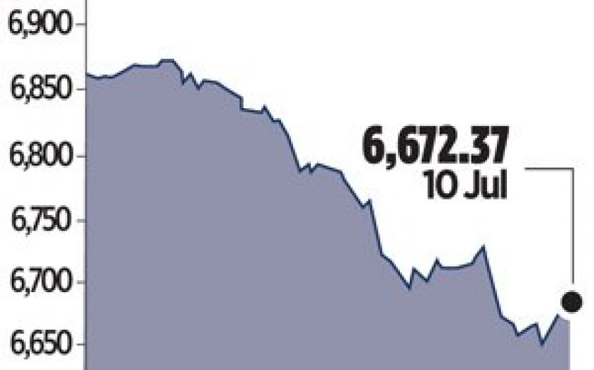 The FTSE 100 lost 45.67 points, or 0.7 per cent, to 6,672.37, extending its decline this week to 2.8 per cent. The broader FTSE All-Share Index also slid 0.7 per cent.
