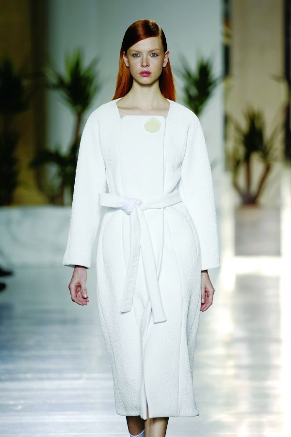 I loved this show. It was an absolutely brilliant collection, one of his best ever. It was very clean and minimal, quite refreshing compared to a lot of busy, complicated shows this year. The clothes were pared back, as were the hair and make-up – quite a clinical approach to autum/winter. The white, as you can see above, is going to be another big trend for this year; quite unusual for winter, which is often associated with blacks, greys and browns.