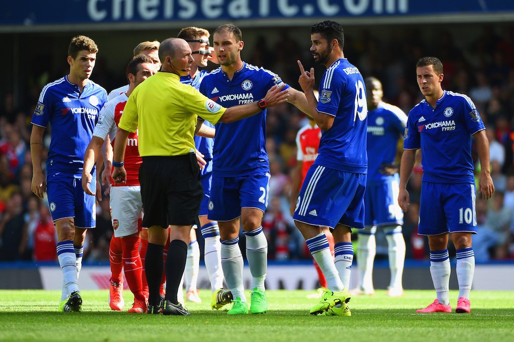 Mike Dean's decision to send of Gabriel in a recent Chelsea v Arsenal game was overturned by the FA (Source: Getty)