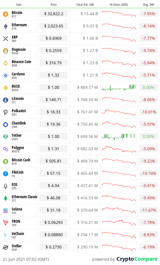 It seems China FUD is the main culprit for this week’s drop, with the country appearing to crackdown on mining in earnest. They look like they’re working province by province, with Yunnan, Inner Mongolia, Sichuan, Xinjiang, and Qinghai all now having ordered Bitcoin miners to halt operations. It’s been argued that in the long term, this could actually be good news for the cryptocurrency, with the likes of MicroStrategy’s Michael Saylor noting that China runs off non-renewable sources like coal and a move elsewhere could cause a move to cleaner energy sources. In the short term though, is there more instability to come?