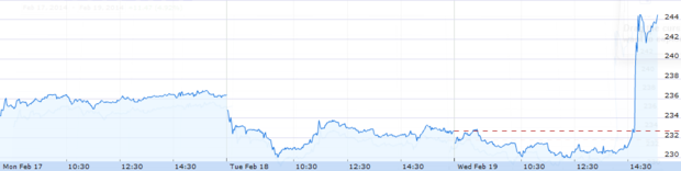 Morrisons shares are currently trading more than 5.1 per cent higher than their previous close on that news. Shares also shot up last Wednesday on rumours of a sale.