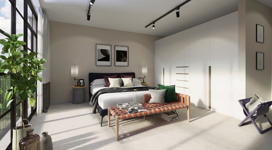 Situated just off Brick Lane, this former 1940s warehouse in east London is going on sale tomorrow to fans of industrial chic. Exposed concrete ceilings and crittall window frames are part of the appeal of this small development close to Aldgate East and Whitechapel station, due to be a major Crossrail hub when it opens next year. There are 15 flats, comprising six one beds, seven two beds, two three beds and a penthouse over four floors. First completions are due in the autumn of 2019.