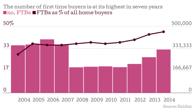Last year the number of first-time buyers rose to 326,500, up 22 per cent on 2013, representing the highest number of first-time buyers since the financial crash of 2008.