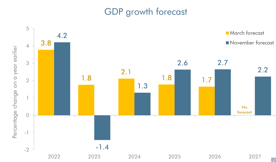 Back then, the fiscal watchdog created by former chancellor George Osborne in 2010 reckoned the economy would grow 1.8 per cent next year. Now, it has warned of a 1.4 per cent contraction.