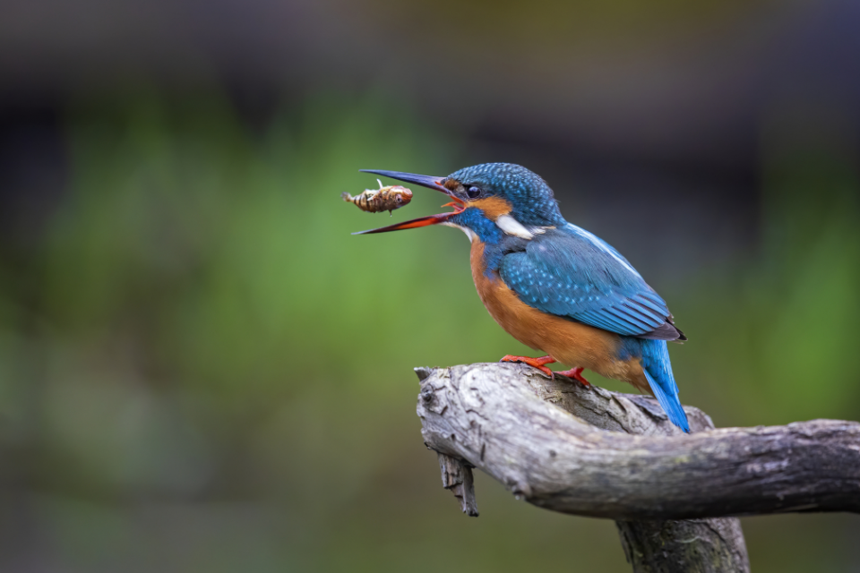 A kingfisher stops for a snack in this photo by Thomas Hinsche