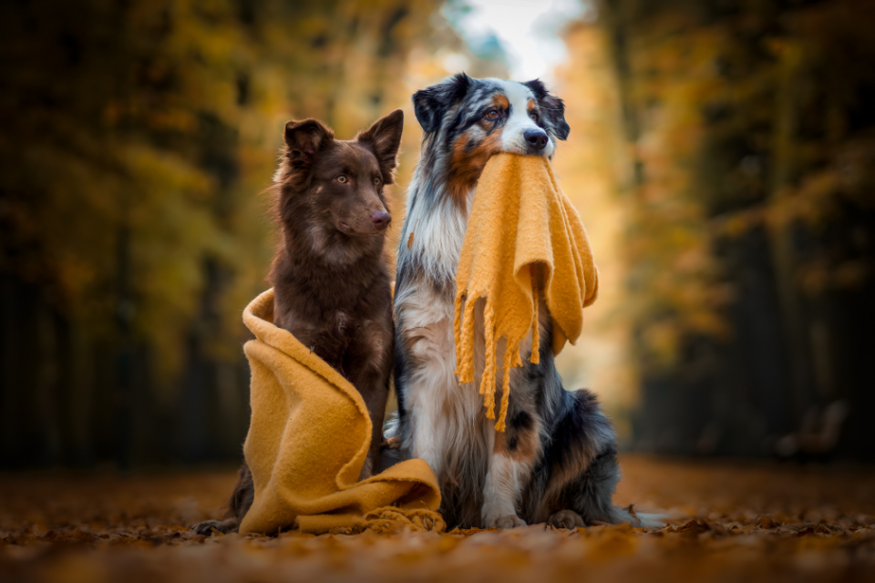 Two dogs wrap up in the cold in this autumnal image by René Brunda