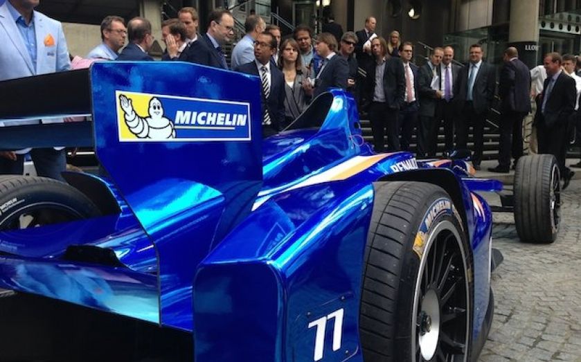 Anyone wondering what the besuited crowd around the bottom of the Lloyd's building were looking at this afternoon can wonder no more, it was a very fast car – a Formula E car to be precise.