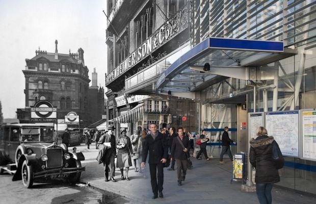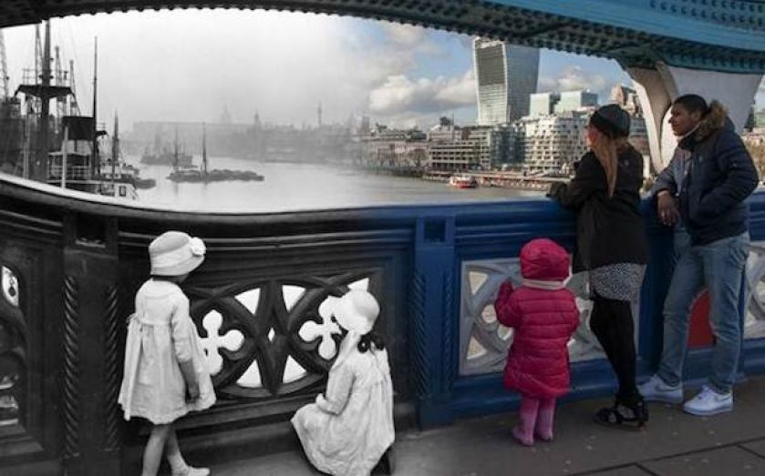 The images have been created to publicise an update for the Streetmuseum app which allows you to overlay the view through your camera phone with a historic photograph of the area.