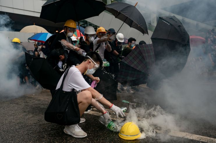 Protesters face tear gas as Hong Kong prepares for a general strike