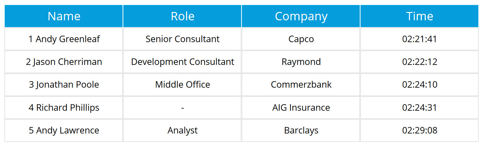 But as The Capitalist-verified runner results board shows, he wasn’t even close to out-running our latest top five City All-Stars.