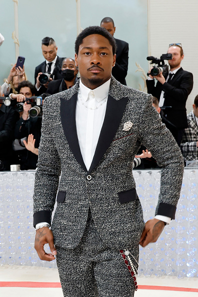 Buffalo Bills wide receiver Stefon Diggs wore grey on the Met Gala carpet. He was one of two NFL stars. In a toned down suit was Kansas City Chiefs and Super Bowl winning quarterback Patrick Mahomes.