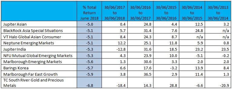 Although investors should be aware past performance is not a reliable indicator of future results, here are the top and bottom ten Investment Association funds and sectors for June 2018 in full: