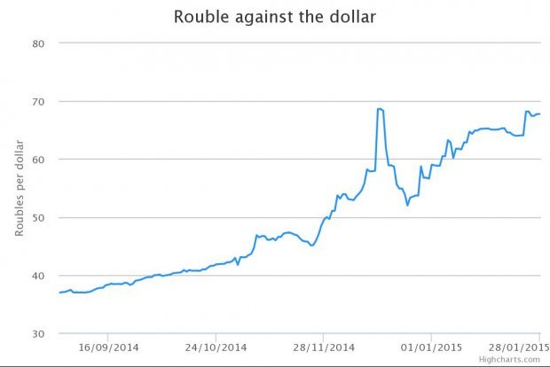 Real wages in the country have declined 4.1 per cent and unemployment stands at 5.3 per cent, or 3.97m people, while inflation hit 11.4 per cent in December. Meanwhile, retail sales jumped 5.3 per cent in the same month year-on-year as Russians panic-bought imported items that could go up in price as the rouble falls.