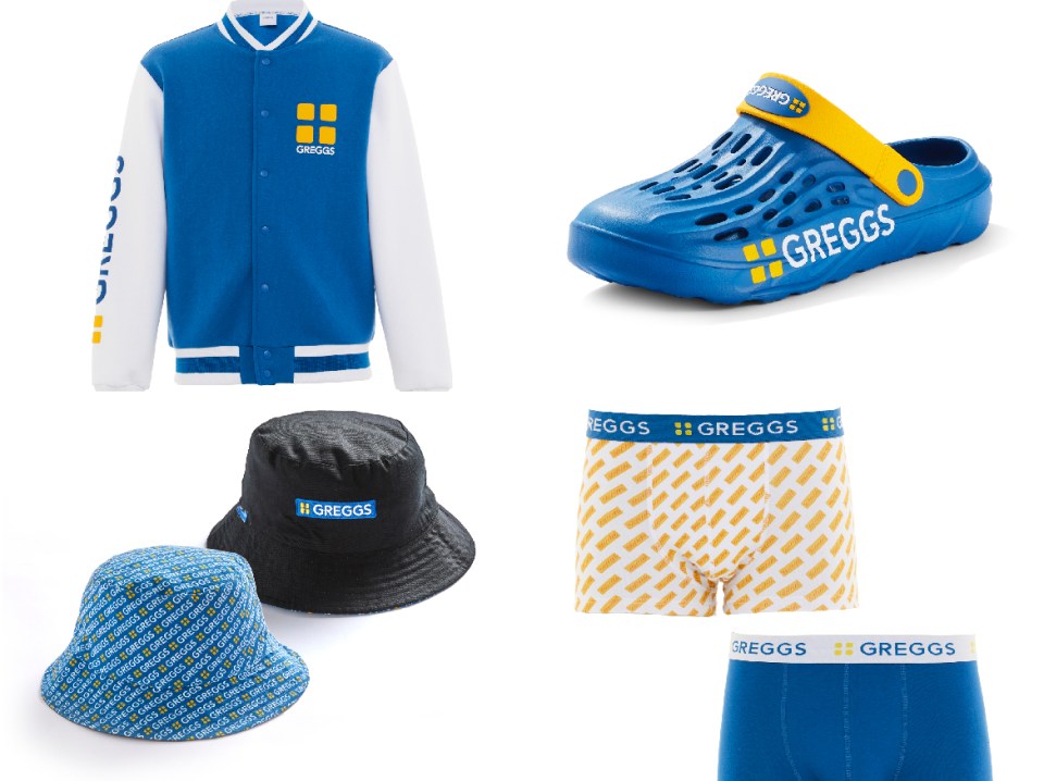The collection includes 21 items ranging from Greggs-themed basketball jerseys and varsity jackets, bucket hats and boxer shorts.