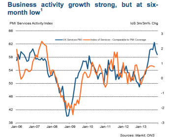 While the headline activity balance fell from 60.0 to 58.8 – the weakest reading seen in the second half of 2013 – this was still consistent with a very strong rate of growth. Indeed, the average level of the index over the fourth quarter as a whole points to services output rising by about 1.5% q/q. Confidence amongst services firms also rose in December to its highest level since March 2010. As a result, a weighted average of all three CIPS surveys points to quarterly GDP growth in Q4 of about 1.5% too.