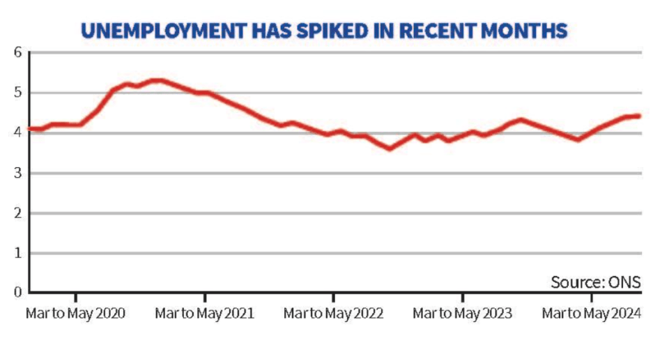 Unemployment has increased for four consecutive months, rising from 3.8 per cent at the end of 2023 to 4.4 per cent, meaning an extra 190,000 people are out of a job.