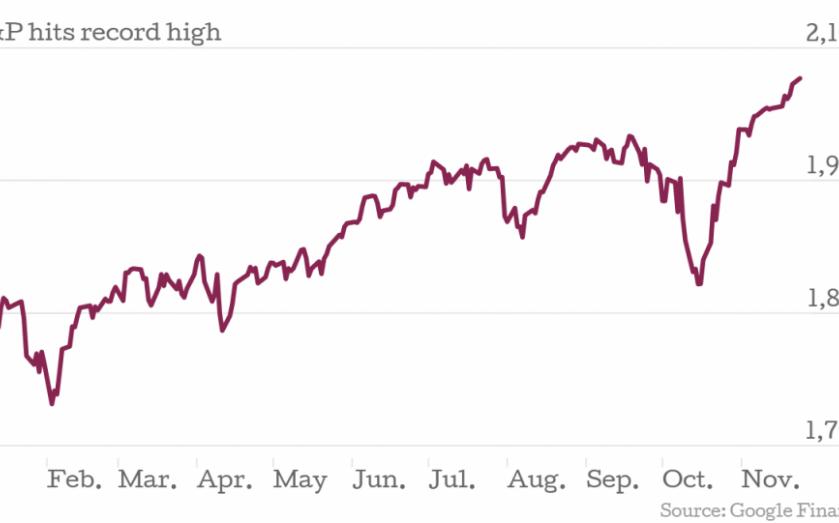 The S&P 500 is in record breaking mood again. The index closed up 0.3 per cent on 2,069.41.