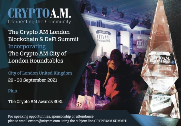 Hosted across two days – Wednesday September 29 and Thursday September 30 – the Crypto AM London Blockchain & DeFi Summit and Awards will celebrate innovation and excellence.