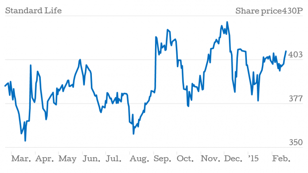 Shares in Standard Life rose 3.4 per cent in early trading, after it posted figures showing pre-tax operating profit grew 19 per cent to £604m in 2014, as assets under management jumped 38 per cent to £296.6bn.