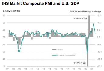 “The pace of expansion in business activity was… the slowest seen in 2021 so far as service providers and manufacturers reported greater constraints on capacity,” IHS Markit said.