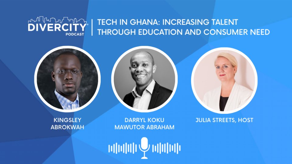 As we continue our international conversations, in this episode we look to Ghana. Host Julia Streets is joined by Darryl Koku Mawutor Abraham, the Growth Director in Africa of Taptap Send and Kingsley Abrokwah, Chief Enabler and Chief Executive Officer of Kudigo. Together they discuss how tech is providing payment solutions across the continent by a generation of early adopters. They share their thoughts and insights on different aspects of diversity across the Diaspora, how tech is being immersed in the education system, and how this could develop talent to fulfil the talent pipeline outside of Africa.