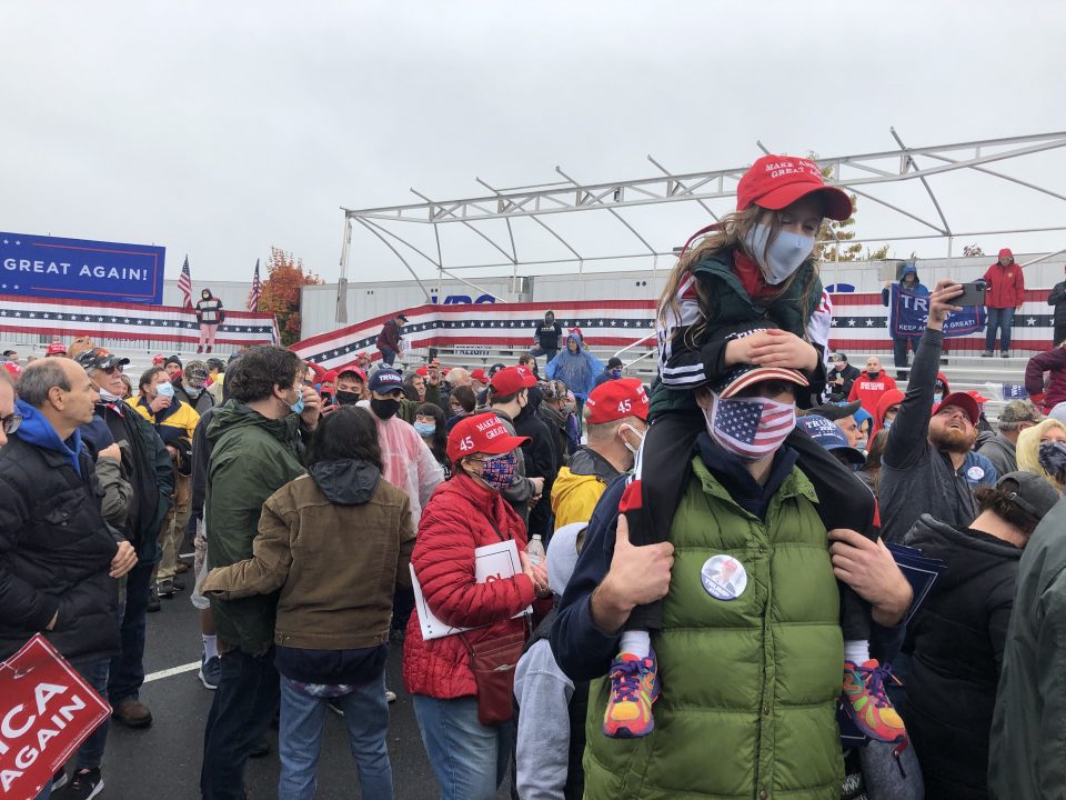 Pennsylvania once again looms large as one of the most important battlegrounds in 2020, with both candidates touring the state yesterday a week out from polling day. The President’s rally at Allentown’s regional airport was a sea of Trump merchandise, American flags and flannel. Trump-themed country and western music was also a fixture on the walk to the airport, with one car blasting a tune that warned “the Trump train was-a-coming”.