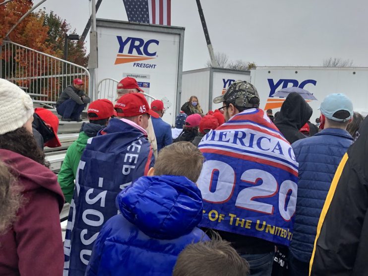 Pennsylvania once again looms large as one of the most important battlegrounds in 2020, with both candidates touring the state yesterday a week out from polling day. The President’s rally at Allentown’s regional airport was a sea of Trump merchandise, American flags and flannel. Trump-themed country and western music was also a fixture on the walk to the airport, with one car blasting a tune that warned “the Trump train was-a-coming”.
