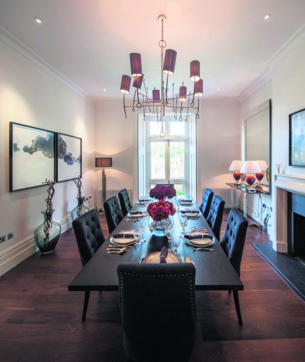 The double-fronted Grade II listed period house has been fully refurbished in recent years so all five floors are in sparkling condition, even after the celebrity parties. Two reception rooms, two studies, a dining room, breakfast room, utility room and six bedrooms (three of which are ensuite) are spread across five floors, with two balconies, a patio and front and back gardens all providing plenty of outside space.