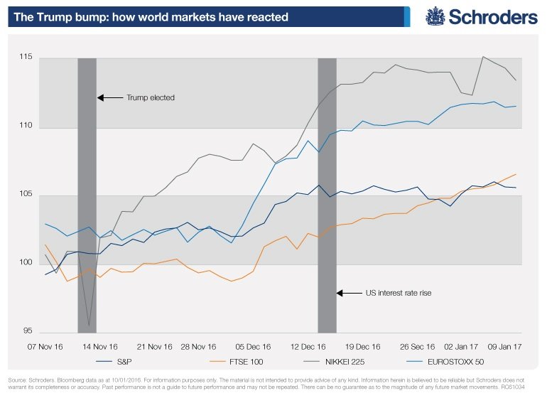 Schroders chief economist Keith Wade said: "Investors have fully bought into Trump’s promise to 'make America great again': activity will be stronger and trade deals more favourable to the US. Inflation and interest rates are heading higher.