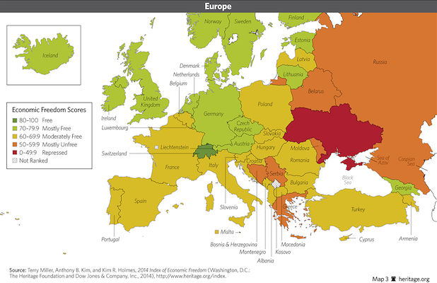 Despite tax cuts and reductions in government spending the UK economy is no freer than it was in 2013, according to the Heritage Foundation's Index of Economic Freedom. At the dawn of 2014 the UK managed to increase its score by a meagre 0.1 percentage points.