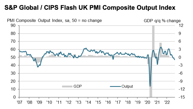 “While the economic downturn has led to reduced upward pressure on prices, the weak pound and high energy costs meant that input cost inflation remains higher than at any time in the survey’s history prior to the pandemic,” Chris Williamson, chief business economist at S&P Global Market Intelligence, said.