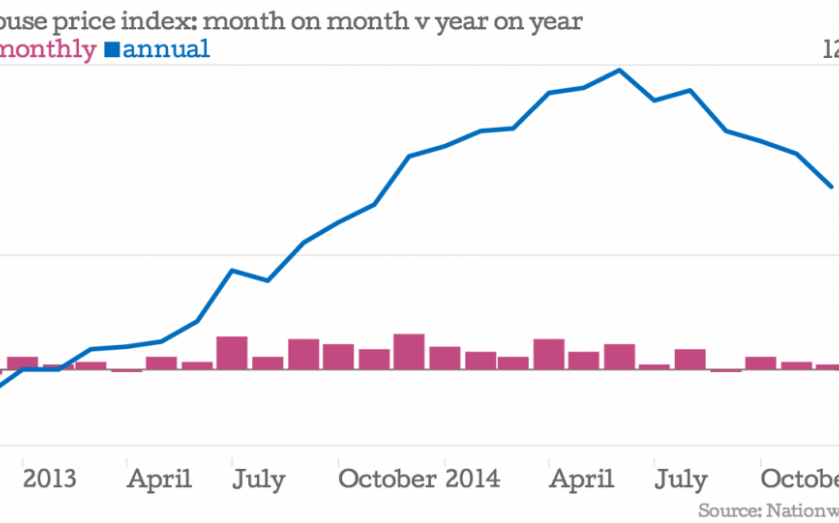 Nationwide’s figures this month are more of the same: a 0.2 per cent rise in December (down 0.1 of a percentage point from a similarly lethargic 0.3 per cent in November) bringing the rate for the year to 7.2 per cent. It seems so long ago that the rate was fuelling fears of overheating in June, when it hit 11.8 per cent (see graph above).