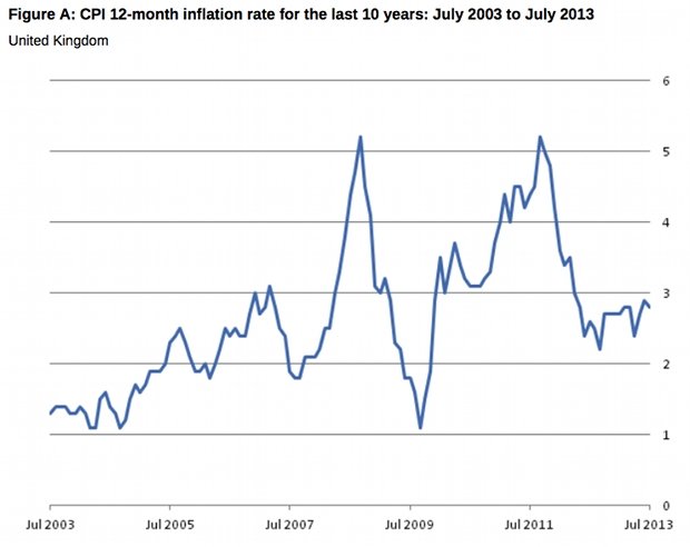 In its August quarterly inflation report, the Bank of England predicted inflation would average 2.82 per cent in the third quarter.