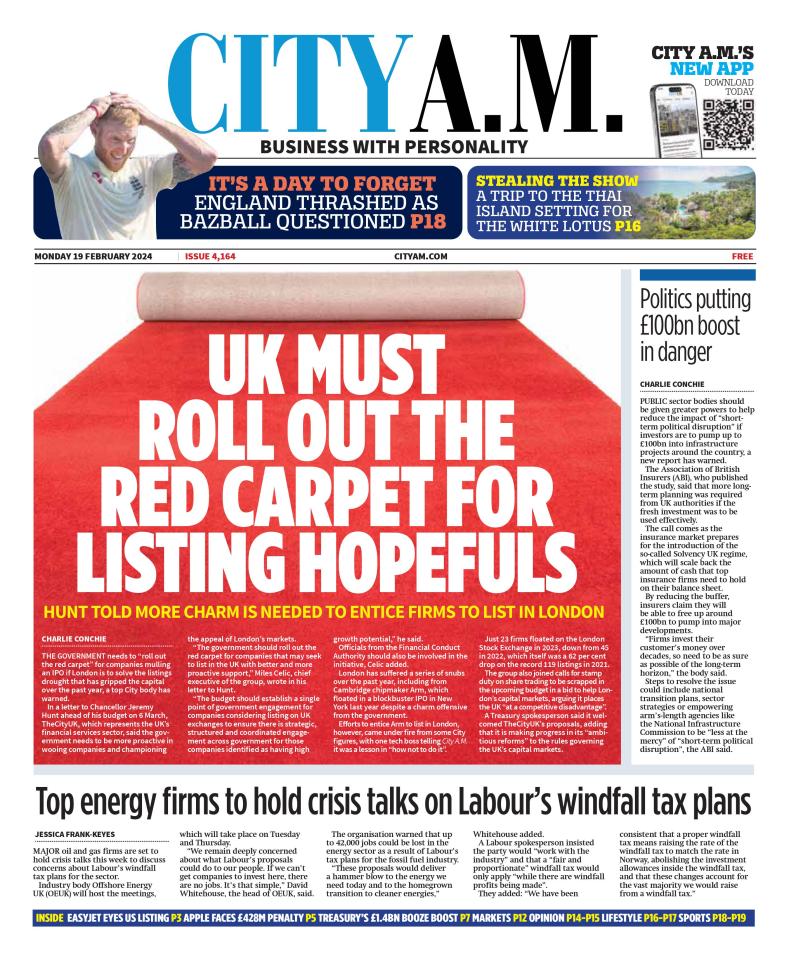 Hunt must ‘roll out the red carpet’ for firms looking to IPO, City group warns