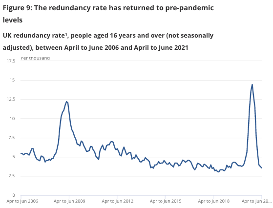 Encouragingly, there were no signs of redundancies picking up ahead of the end of the furlouh scheme, the ONS said. Many have predicted a surge in job losses as the end of the furlough scheme approaches as a result of firms attempting to pre-empt shouldering a higher wage bill.