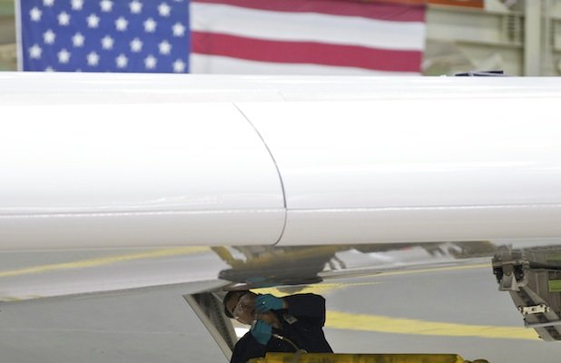 A 57.5 per cent rebound in aircraft bookings, along with transportation equipment, which has been up five of the last six months, drove the 3.7 per cent increase in new orders, rising to $77.0bn (£47.53bn) – up 12.3 per cent. This was led by nondefence aircraft and parts, which increased $.69bn. Excluding defence, new orders increased 3.2 per cent.